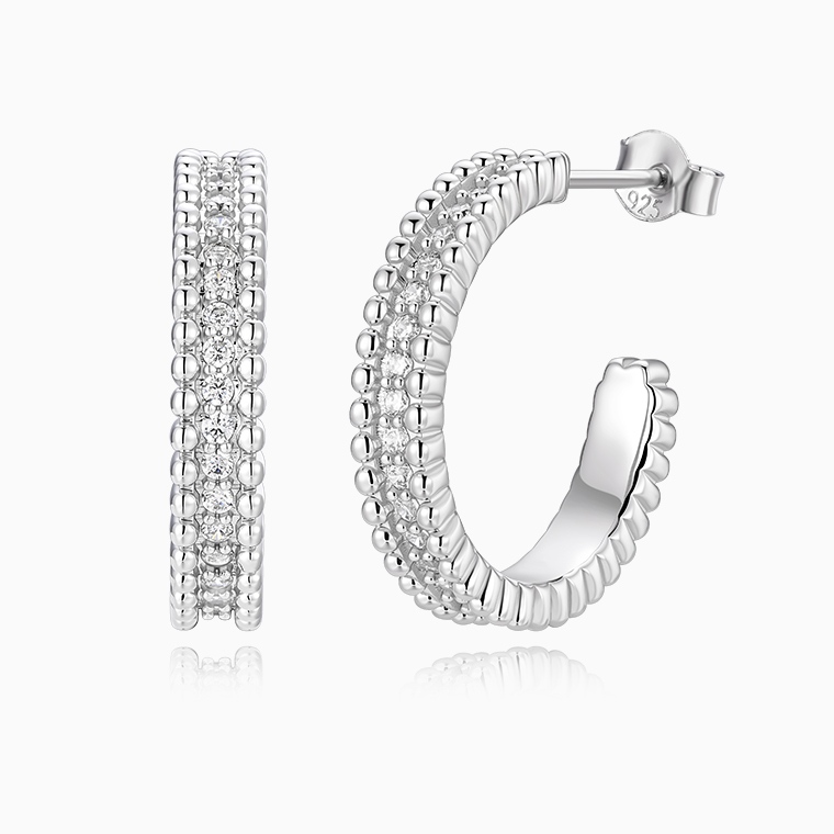 Shining Star Jewelry Fashionable Sterling Silver Zircon Women's Hoop Earrings